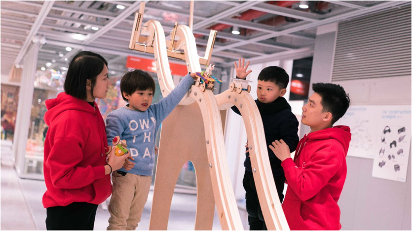 《無動力小車》是工程學和設計學的融合體現,體驗者可以在這個環節制作出自己與眾不同的小車。這里的小車是一個小產品,體驗者可以運用數學物理知識,學習小車結構和車體設計,并結合實際測試調整改造小車。能夠促進個性化探索與創意表達,玩中學,學中玩,在體驗中了解物理規律、車輛工程等知識。