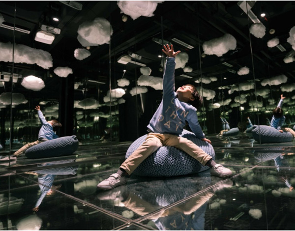 《七彩光球》,色彩繽紛的星云填充了這個(gè)云霧繚繞的仙境,在《天氣實(shí)驗(yàn)室》中,用聲音監(jiān)測未來云朵的顏色變化,體驗(yàn)者可以親自控制“天氣”的變化。只需對(duì)著天空呼喊,星云就會(huì)持續(xù)變幻顏色,當(dāng)聲音達(dá)到一定分貝值時(shí),會(huì)出現(xiàn)雷電交加的酷炫畫面,感受呼風(fēng)喚雨,風(fēng)起云涌的浪漫科技。